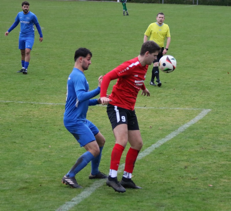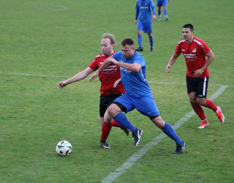 Nach dem Seitenwechsel blieb Güglingen gefährlich, und in der 58. Minute fiel der Anschlusstreffer auf kuriose Weise: Ein Schuss der Gäste prallte vom Pfosten an den Hinterkopf von Keeper Justin Antl und von dort ins Tor – 2:1, ein unglückliches Eigentor.